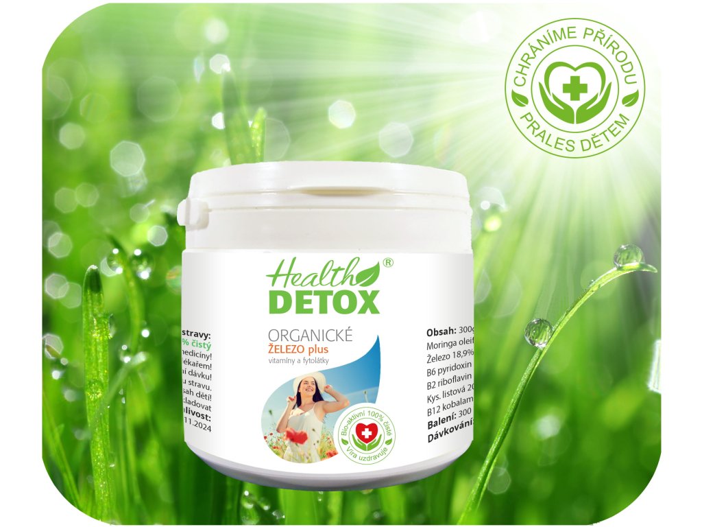 Lékové formy železa způsobují zácpy (zpomalení detoxikačních procesů). Naše receptura obsahuje nejlépe vstřebatelnou formu organického železa a je sestavena tak, aby co nejvíce podpořila imunitní systém, krvetvorbu, nervovou soustavu, psychickou činnost a detoxikaci těla (včetně homocysteinu). Z čehož vyplývá, že pokud máte hodně zanesený organismus a utlumené detoxikační funkce, může na počátku užívání dojít k lehčímu průjmu = tělo se zbavuje škodlivin.